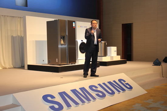 AWE2014开幕前夕,3月17日三星在上海举办了家电战略新品发布会,发布了全球首款曲面UHD TV HU9800、全新的Smart TV系统、叠式对开门“蝶门·美食窗”冰箱以及首款量产的可WIFI操作的“明眸·蓝水晶”系列智能互联网滚筒洗衣机。据了解,上述新品将会于18-21日在AWE2014上亮相。 发布会后,三星大中华区生活家电营销副总裁谢辉接受了中国家电网(CHEAA)记者的采访。
