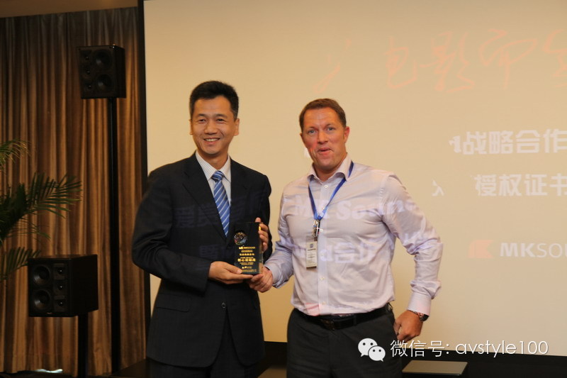 西安雅典音响的掌舵人姚总风度翩翩,学识渊博!接受M&K总裁Lars先生的颁奖合影!