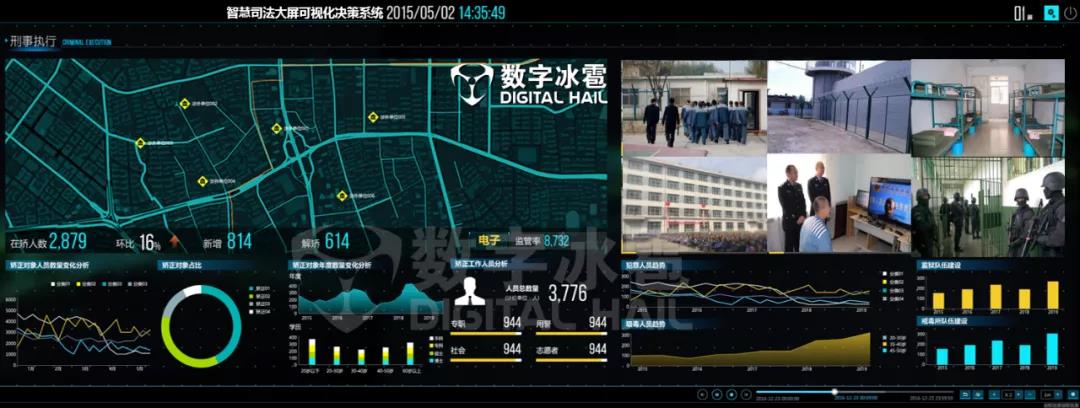 数字冰雹智慧司法可视化决策系统,支持整合司法各部门现有信息系统的数据资源,覆盖“一个统筹、四大职能”等各个工作领域,凭借先进的人机交互方式,实现司法综合态势监测、司法行政监测、刑事执行监测、公共法律服务监测、综合保障监测等多种功能。