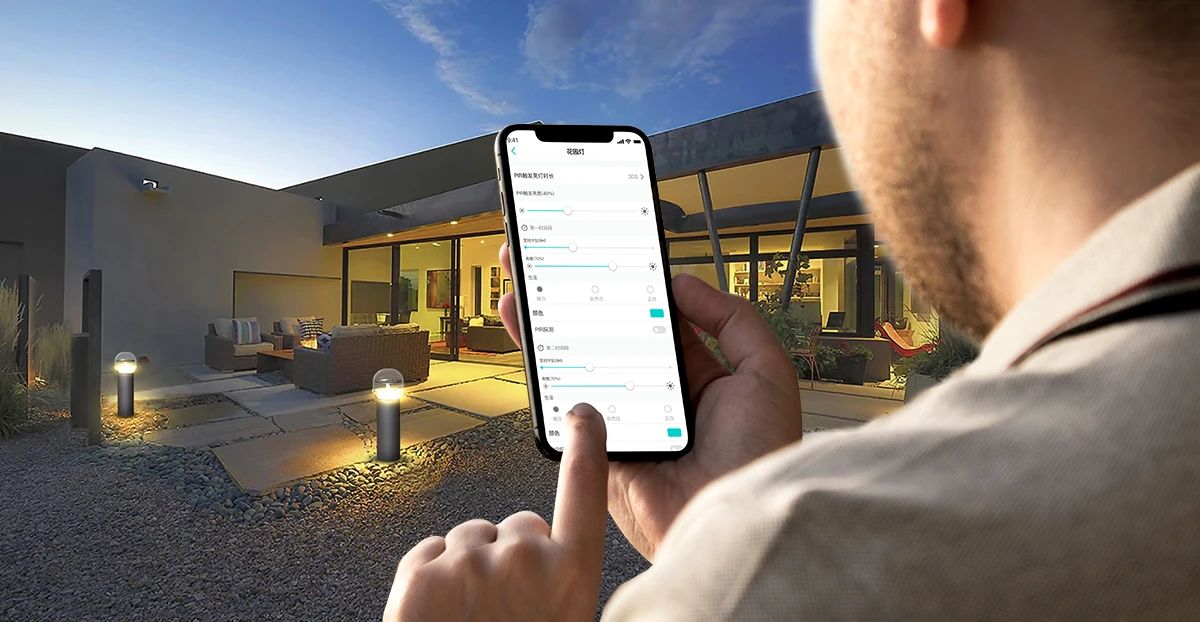 具,创造无限的照明可能。通过APP端可对室外灯具进行远程、群控、调光、定时、延时等控制,并创建自定义场景。
