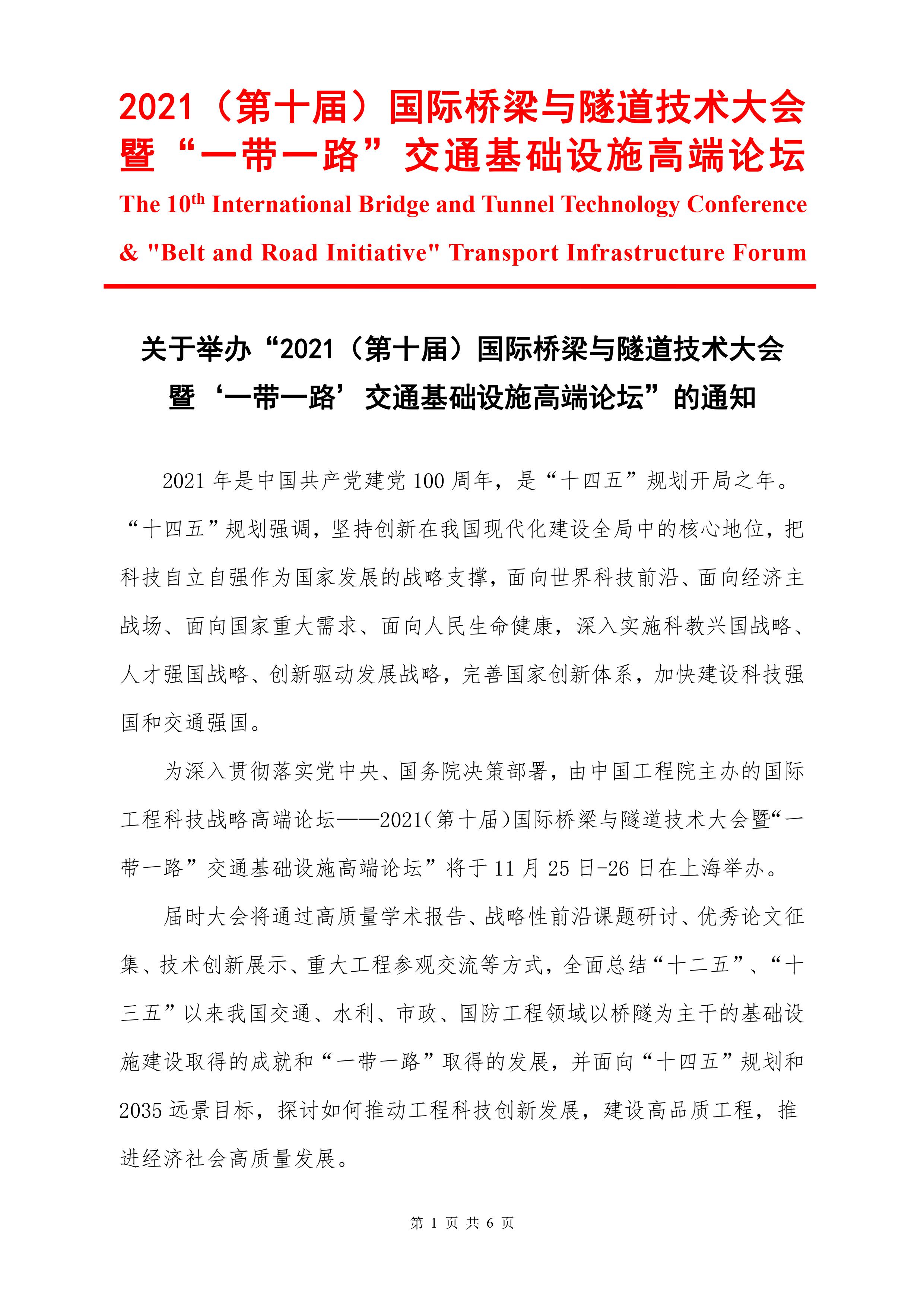 2021(第十届)国际桥梁与隧道技术大会暨展览会