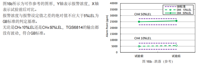 就以GB15322.1-2619为判断依据,用TGS6814-D01做出来的报警器是完全可以符合标准的。线性度误差这些就不用说了,必须是超规格满足要求的。主要来说说长期稳定性、抗跌落、抗中毒的性能。