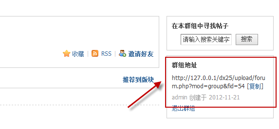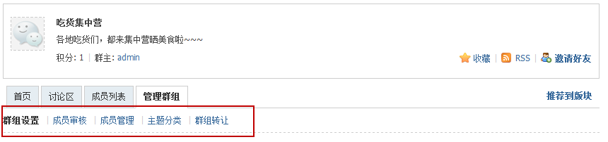 推荐到版块 :将群组推荐到论坛的版块,将会以推荐群组显示到主题列表区域上方