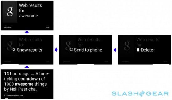 在看过了Google官方的视频演示之后,你是否对Google眼镜的功能有了比较清楚的了解了呢?SlashGear的新文章继续揭秘了它的用户界面和应用程序。首先从系统说起,尽管Google官方没有任何表态,但可以肯定的是这只内置双核OMAP处理器的眼镜运行的是基于Android 4.0的系统,内置的无线信号包括WiFi、蓝牙和GPS(但没有移动蜂窝网络),还内置有包括陀螺仪、加速计在内的传感器来识别出你脑袋的运动方向和角度。