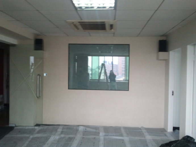 步宇的有一个项目:《動数字科技智能集成项目》。工程地点位于天目山路古翠路口,这个项目智能控制分为电器控制(投影仪、功放、空调控制)、窗帘控制、灯光控制、纳米膜触屏控制、门禁控制。经过步宇工程人员2天的调试,已经交付客户使用。客户对于这套系统还是很满意的。 这次调试可谓一波三折。刚开始调试时,出现了我们从未遇到的问题——干扰。开、关灯时,会对投影信号产生强烈的干扰,投影机会出现5秒无信号源的现象。因为所有线缆都不是我们敷设的,因此对于这个问题,非常棘手,我们无法准确地知道干扰发生在哪个位置,我们需要花大量的时间检查敷设的线路。首先我们考虑的是灯线的干扰,灯线和HDMI线从同一位置下来,我们把灯线移开,从另一位置引下,干扰依旧,排除灯线的干扰;我们再打开天花板,里面的线缆织成了一张“蜘蛛网”,强电线、网线、音响线、HDMI线彼此交叉,而且挨得很近。我们把功放至投影仪的HDMI线绑在丝杆上,离强电线及音响线30公分以上,再测试,开灯有干扰,关灯无干扰,确定受干扰的那段线路。我们要求客户对强电线路进行整改,并且购买锡箔纸把HDMI线包起来。强电线路重新敷设,再用锡箔纸把HDMI线包起来,问题得到解决。 下面让我们步宇科技带大家到现场看下施工及成果照片吧!