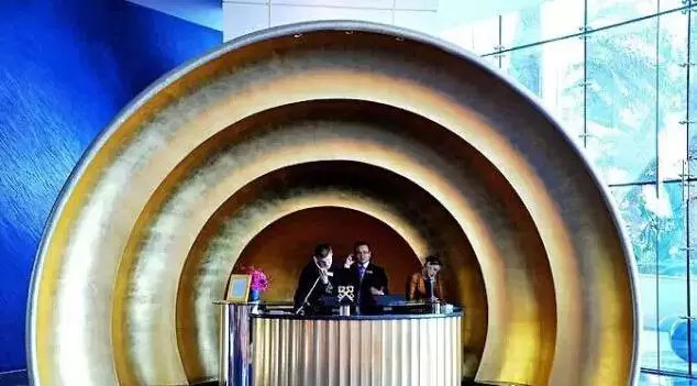 那可是黄金打造的酒店前台。虽然桌子很小,但后面那个背景。我就不说什么了,完胜啊!