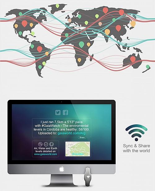 由Cristian Tomas Moyano设计的一款智能手表。除了手表的基本功能外,还可以让人们更大限度地意识到个人健身能力,GAIA扩大了这种健康意识的功能监测,如身体内部以及环境外部的检测功能。内置的环境传感器,可以对周围的的基本污染空气情况,提供实时性数据,或以其他形式来提醒用户。这种宝贵的见解,换而言之,就是提醒佩戴者远离被污染的环境,还可以通过实时分享,让网络上的人们都可以看到佩戴者所提供实时位置的数据。
