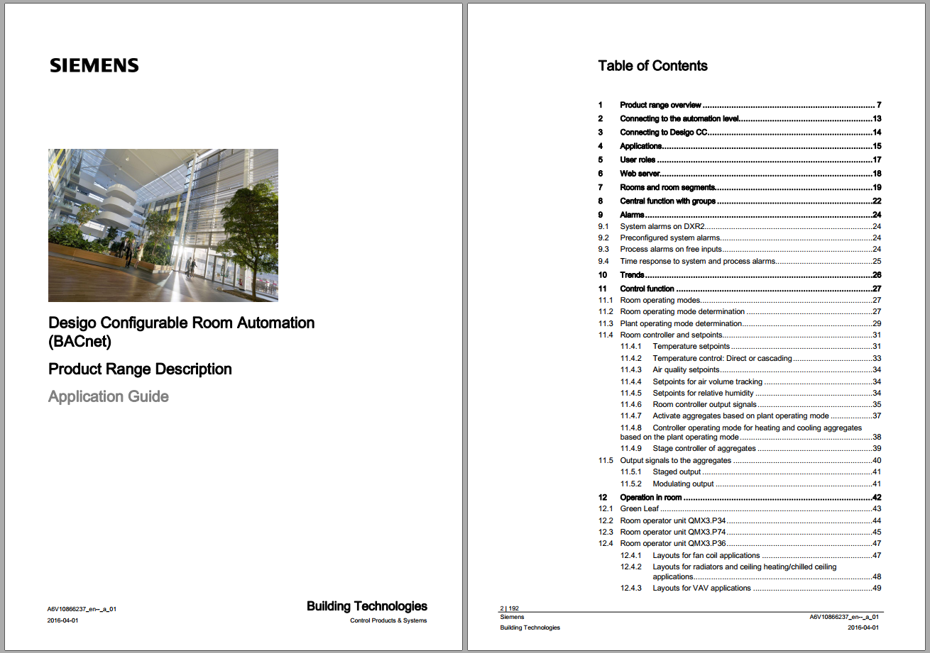 Desigo Configurable Room Automation (BACnet) Product Range Description Appli...