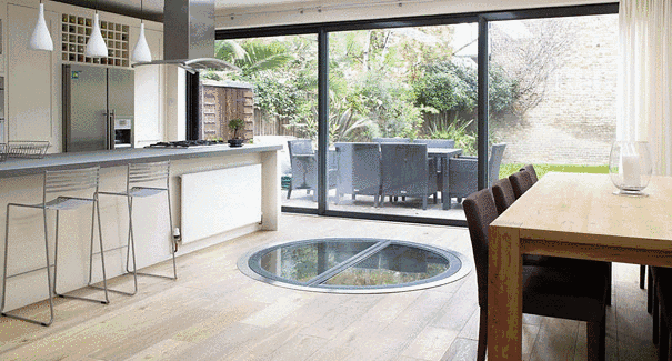 厨房器具藏在墙壁里,瓜果蔬菜酒类藏在地板下。“旧时王谢堂前燕,飞入寻常百姓家。”属于土豪的私人酒窖一样能进入到寻常百姓家中。 闲暇时刻,拿什么酒来招呼朋友? 那就随手打开地窖玻璃门,看中哪个拿哪个。