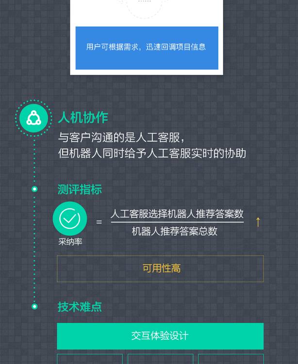 作为人工智能应用方面的企业级服务先行者,环信CEO刘俊彦认为:“在中国目前的环境,锦上添花的AI功能叫好不叫座,客户缺乏付费意愿。AI只有做到真正替代人工或者完全自动化一个企业的流程,甚至创造出一个全新的更具效率的业务流程,才会有客户大规模买单。”而在客户服务行业,当用户请求接入后,先由智能客服机器人解答80%的常见问题,剩下20%复杂问题再由真人专家客服来回答解决。智能客服机器人创造的整套流程已经完全改变了整个客服行业的劳动力结构和工作方式,正如自动驾驶未来终将彻底改变整个交通出行和汽车制造行业。