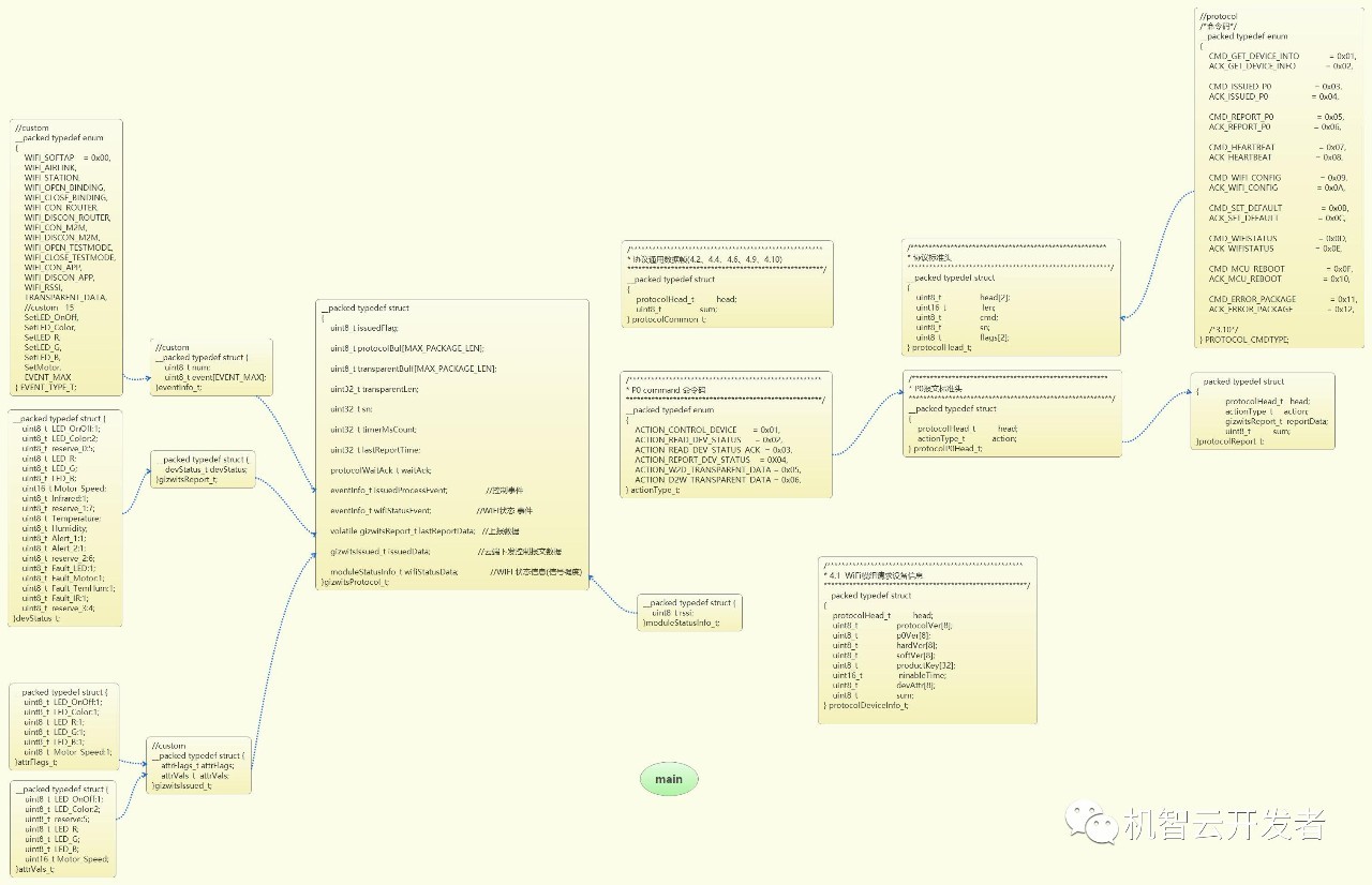 今天送上两张机智云GoKit_STM32源代码分析的思维导图,详细了分析了各个成员之间的依附关系,掌握GoKit源码后,可帮助广大开发者快速了解整个源码架构,开发者可以快速方便的搭建自己产品的原型demo。
