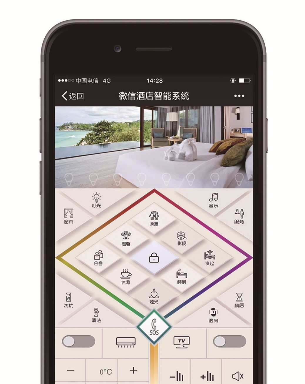 在这个项目中,使用了KNX协议的开关面板作为控制终端,面板通过网关与HDL的Buspro系统连接。其它功能模块则大量使用HDL Buspro的系统产品,如酒店客房系统的配电箱均使用HDL设备、客房空调晶典面板及HDL客房门铃面板等。另外,当客人入住时,可以扫描二维码然后用微信控制客房中所有接入系统的电器设备,给用户营造了一体化的智能体验。
