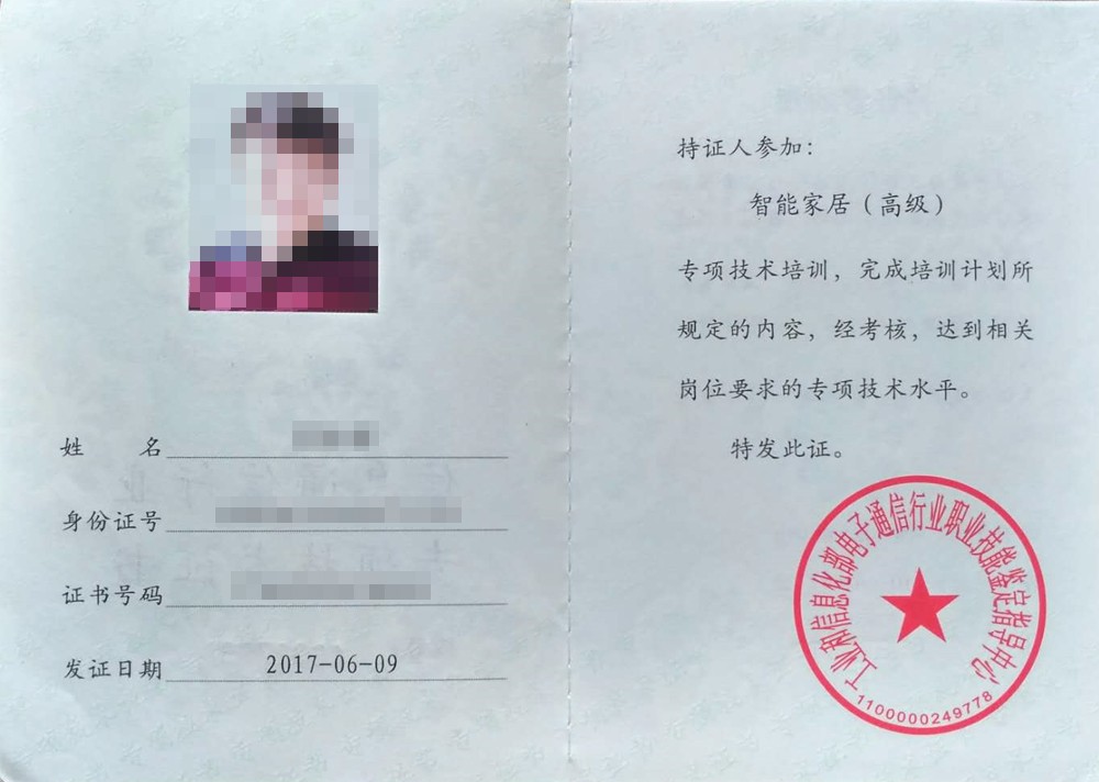 ▌培训分为理论、案例、经验分享三部分,培训结束后统一进行考试,考试合格的学员可获得工业和信息化部电子通信行业职业技能鉴定指导中心审核通过并颁发的《智能家居(高级)专项技术证书》,证书支持在线查询,全国通用,可作为专业技术人员专业技术经历和继续教育的凭证,作为个人岗位聘用、任职、定级和晋升职务的重要依据。