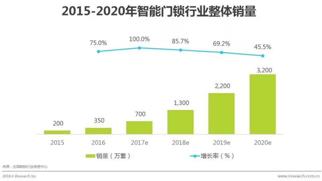 2017年智能门锁行业整体销量预计约700万套,较去年增长1倍,消费者对智能门锁的消费需求增长较快。