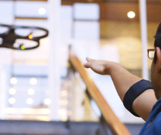 MYO看上去并不引人注目,和普通腕带并没有太大差别,但MYO却能在肌肉运动或指向屏幕时感知到这些多样化的肌肉运动。MYO与Leap Motion相比,一大优势在于不受地域局限。宣传广告中,演示者仅通过转动手腕的简单动作,就能调节位于房间另一端的笔记本电脑的音量。演示幻灯片时,不再需要遥控器等装置,而只需要两手指在空气中轻轻一划,就能进入下一张幻灯片。类似的例子数不胜数。但MYO也有一个明显的缺点,即只能接受身体特定部位的信号,如单侧手臂,单个控制信号输入。