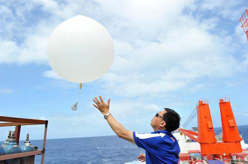 探空气球依靠空气浮力上升,通过搭载的各类气象探空仪器收集、测量所需的数据,然后传回地面中心。其中,温度传感器、湿度传感器和数字压力传感器是这些仪器中比较常见的测量元件,它们分别用于获取气球在上升时温湿度和气压数据。但仅仅只测量是还不够的,同时还需要知道测量所在的区域。因此,还需要通过GPS模块来确定探空气球的经纬度。而后,再结合由气压推算出的海拔高度,这才算是做到了真正的三维空间气象数据测量。 我国新型探空火箭研发 2016年5月,为掌握海上灾害性天气的发生和发展过程,提高海洋气象灾害的预报精度,中国科学院大气物理研究所无人艇研发团队成功研制了一种基于自控驾驶的半潜式海洋气象观测专用无人艇。 该艇是一种自动驾驶的水面机器人,是世界上首艘可以发射探空火箭的无人艇。基于卫星定位导航和艇载姿态传感器等信息,该艇可实现自动部署、自动观测、自动发射探空火箭和自动传输观测数据等功能。